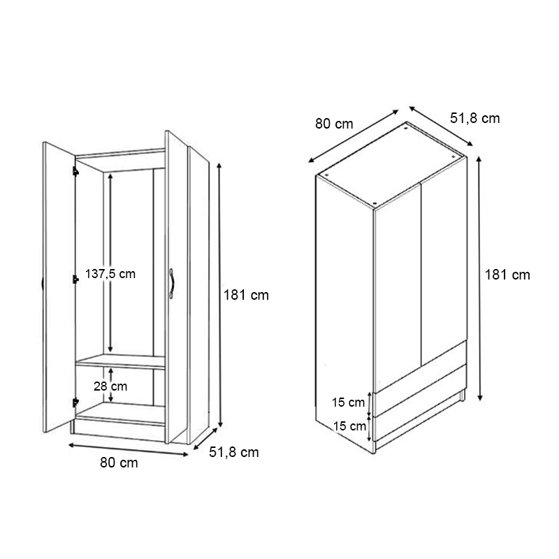 - Διαστάσεις ντουλάπας: Μήκος 160 x Βάθος 51,8 x Ύψος 181 εκ.