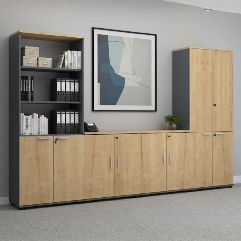 Ντουλάπι γραφείου με κλειδαριά επαγγελματικό Venturo Megapap χρώμα ανθρακί – φυσικό οξιάς 80x40x80εκ.