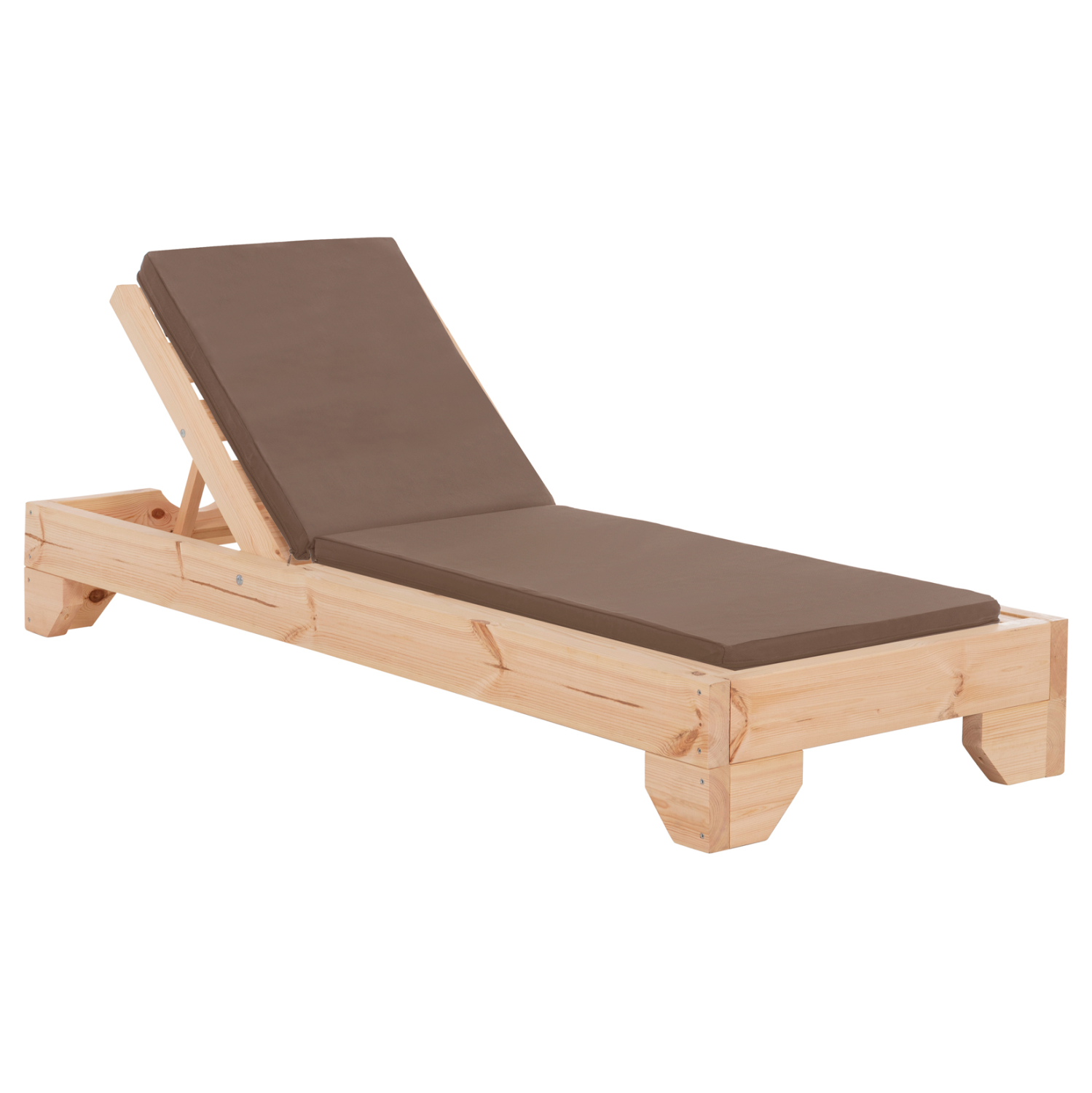 -Ολόκληρη η ξαπλώστρα έχει κατασκευαστεί από ξύλο πεύκου με εμποτισμό και επιπλέον στρώση με βερνίκι νερού. Το πεύκο είναι ένα μαλακό, λευκό ή ανοιχτό κίτρινο ξύλο το οποίο είναι ελαφρύ σε βάρος με ευθύγραμμα νερά ξύλου. Αντέχει στη συρρίκνωση, διόγκωση και κάμψη. Ο εμποτισμός υπό την ευρεία έννοια είναι ο χρωματισμός του ξύλου (συνήθως βερνίκια) με την μέθοδο της εμβάπτισης.