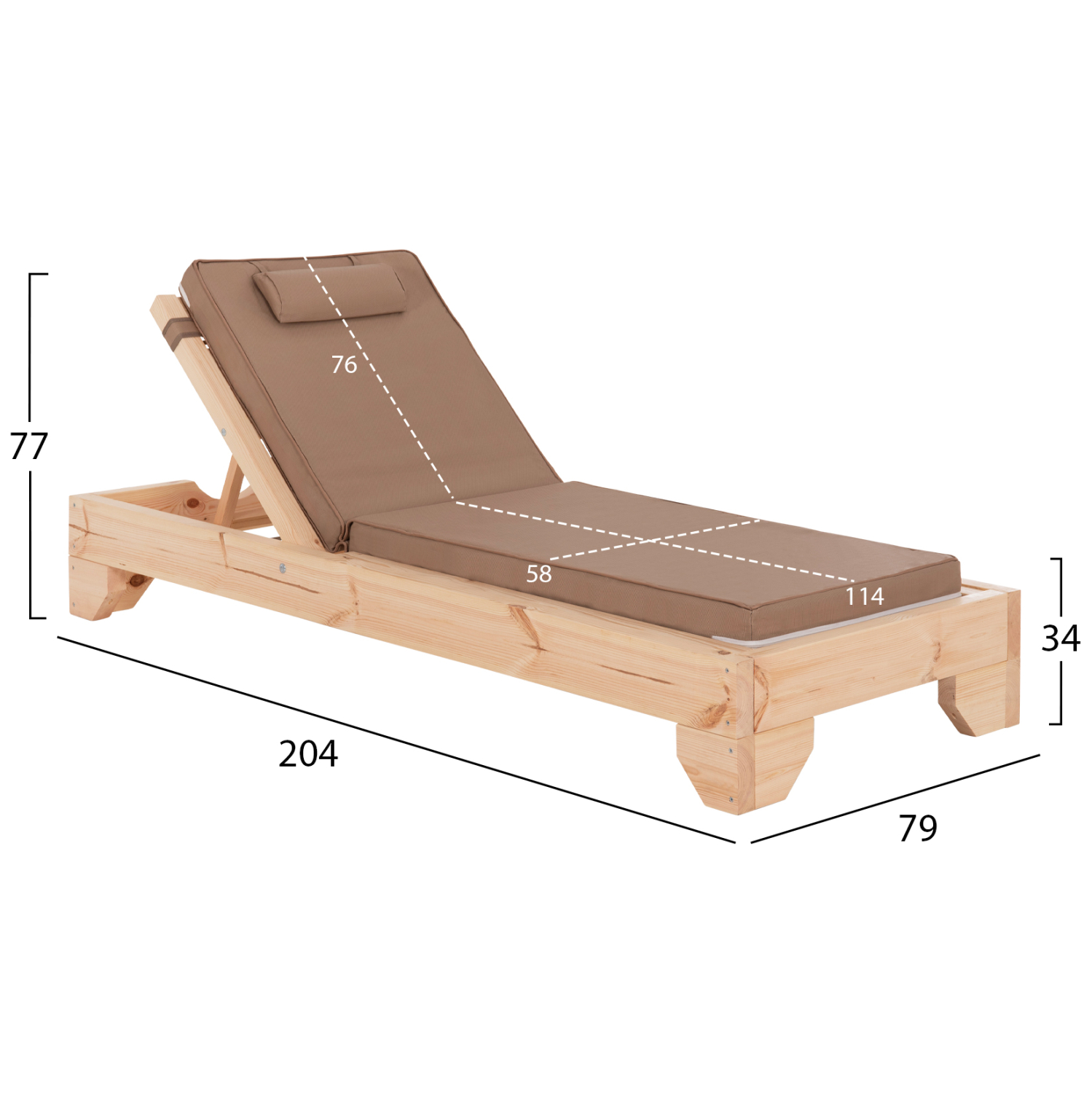 -Το μαξιλάρι που συνοδεύει την ξαπλώστρα είναι από αφρό μέτριας σκληρότητας ενώ το κάλυμμα είναι από textilene σε ΜΟΚΑ χρώμα. Δένεται στην ξαπλώστρα με κορδόνια.
