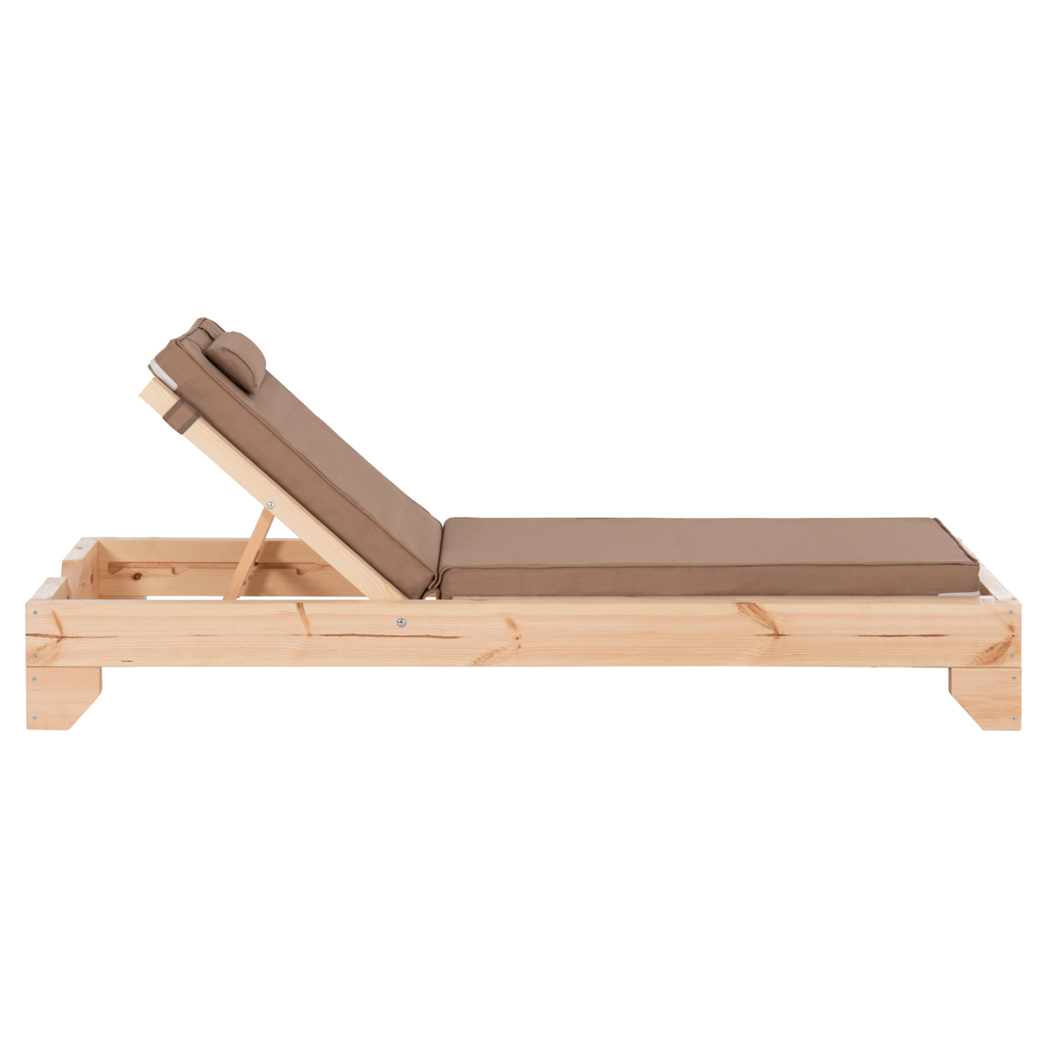 -Ολόκληρη η ξαπλώστρα έχει κατασκευαστεί από ξύλο πεύκου με εμποτισμό και επιπλέον στρώση με βερνίκι νερού. Το πεύκο είναι ένα μαλακό, λευκό ή ανοιχτό κίτρινο ξύλο το οποίο είναι ελαφρύ σε βάρος με ευθύγραμμα νερά ξύλου. Αντέχει στη συρρίκνωση, διόγκωση και κάμψη. Ο εμποτισμός υπό την ευρεία έννοια είναι ο χρωματισμός του ξύλου (συνήθως βερνίκια) με την μέθοδο της εμβάπτισης.