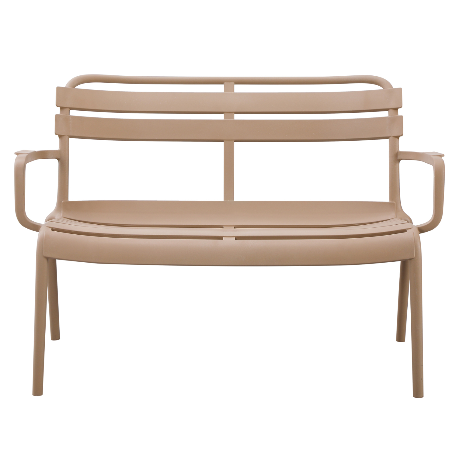 Το 2θέσιο παγκάκι εξωτερικού χώρου KORVER είναι εξολοκλήρου κατασκευασμένο από πολυπροπυλένιο σε ΚΑΠΟΥΤΣΙΝΟ χρώμα. Σχεδιαστικά, είναι λιτό με όμορφες καμπύλες, με πλάτη και μπράτσα, και μπορεί να χρησιμοποιηθεί με πολλούς τρόπους προσφέροντας μια πρακτική και ανθεκτική χρήση. Ιδανική πρόταση για χρήση σε εξωτερικούς χώρους, είτε επαγγελματικούς (χώροι δεξιώσεων, εταιρείες catering, κλπ.) είτε για το σπίτι.