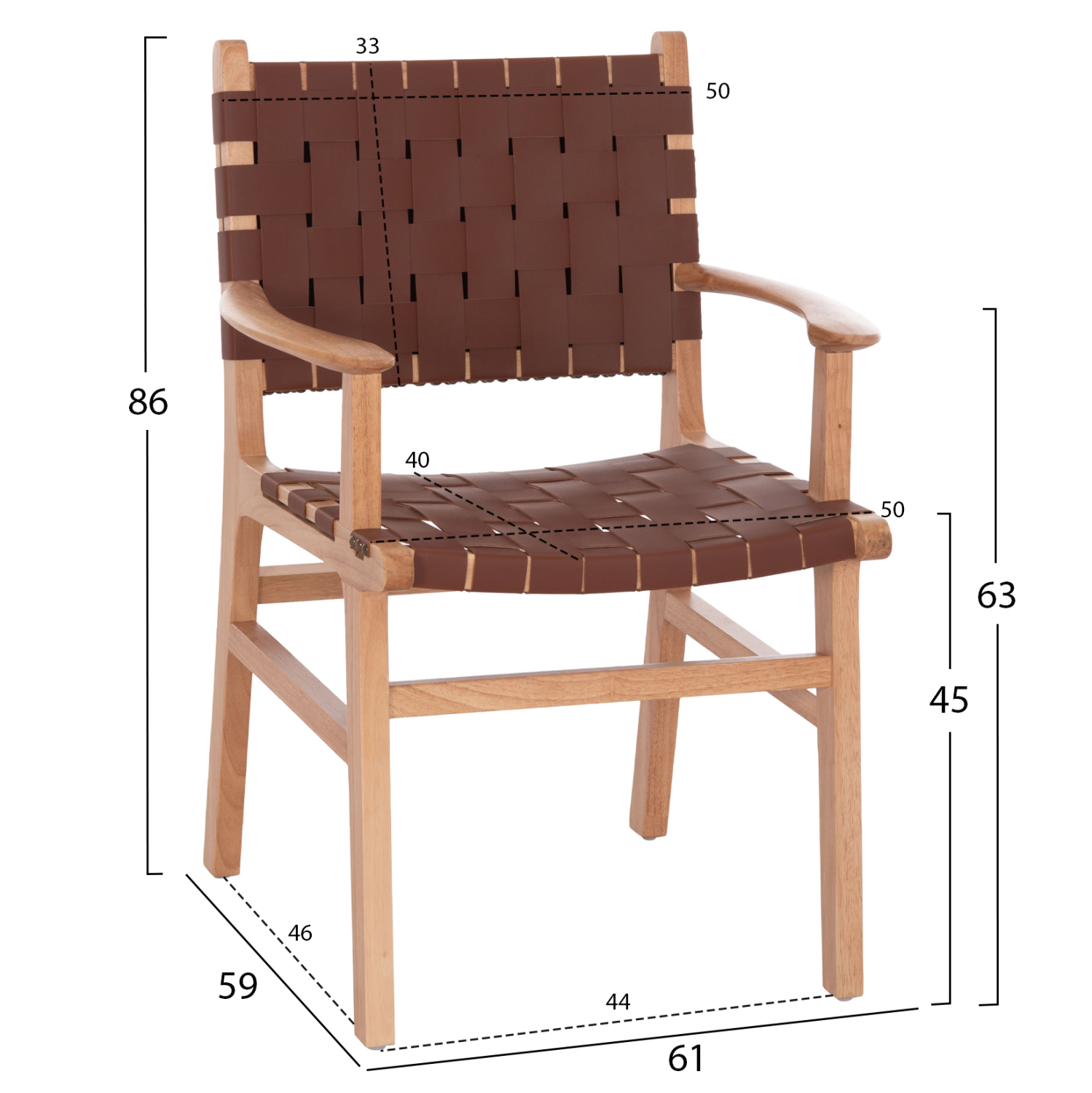 Η πολυθρόνα FELIPE είναι φαρδιά και απαράμιλλης ομορφιάς. Ο πανέμορφος σκελετός της είναι από ποιοτικό ξύλο, ενώ τόσο η μεσαίου ύψους πλάτη όσο και το φαρδύ κάθισμα αποτελούνται από τετραγωνισμένα πλεγμένο PU δέρμα άριστης ποιότητας. Οι σχεδιαστικές γραμμές της πολυθρόνας είναι κομψές και με γνώμονα την άνεση του χρήστη. Το ξύλο έχει το φυσικό του χρώμα που μπορεί άνετα να συνδυαστεί με διάφορα διακοσμητικά μοτίβα ενώ το PU δέρμα είναι ΚΑΦΕ. Η πολυθρόνα θα αποτελέσει το κέντρο ενδιαφέροντος οπουδήποτε και αν τοποθετηθεί.