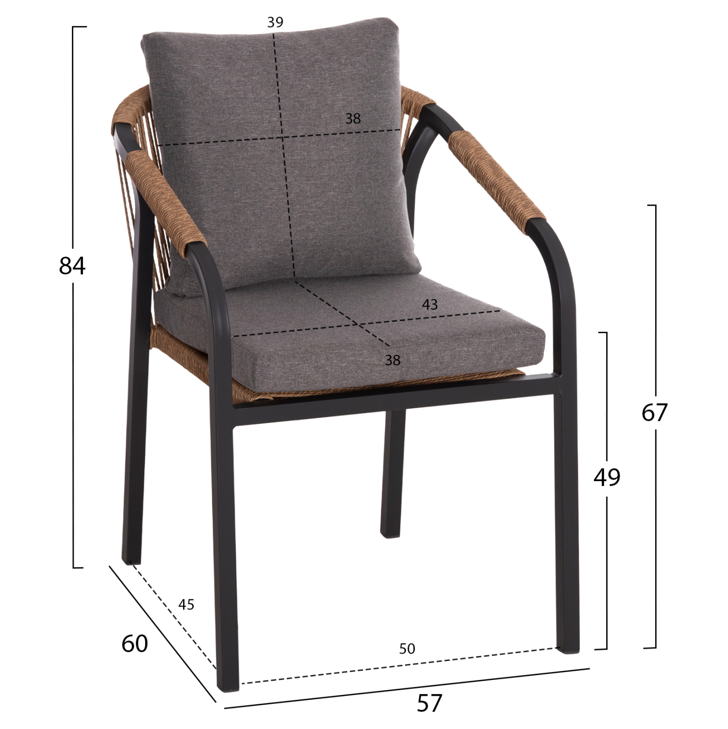 ΠΟΛΥΘΡΟΝΑ MAERLY HM6051.03 ΑΝΘΡΑΚΙ ΑΛΟΥΜΙΝΙΟ & ΜΑΞΙΛΑΡΙΑ-ΚΑΦΕ P.E.RATTAN 57x60x84Υεκ.