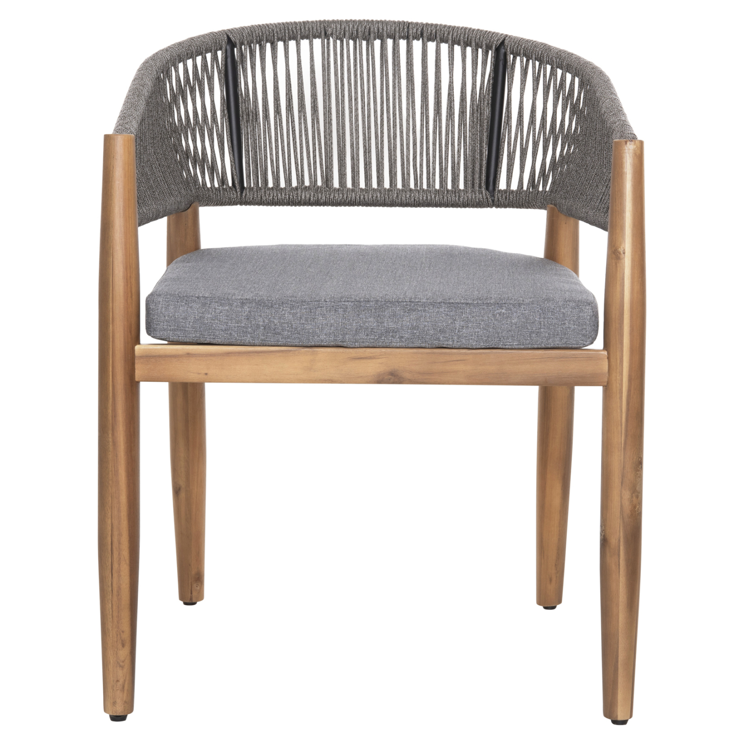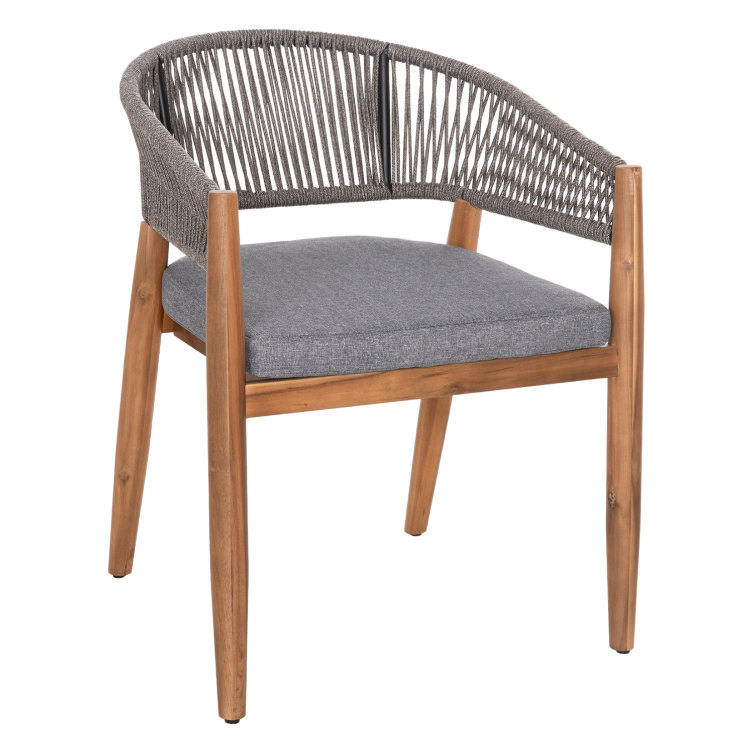 Η πολυθρόνα τραπεζαρίας εξωτερικού χώρου NAVAN συνδυάζει αρμονικά διαφορετικά υλικά κατασκευής. Τα πόδια είναι από ξύλο ακακίας στο ΦΥΣΙΚΟ του χρώμα, ενώ ο σκελετός της πλάτης είναι μεταλλικός με πλέξη από nylon σχοινί σε ΓΚΡΙ χρώμα. Το κάθισμα διαθέτει μαξιλάρι με πολυεστερικό ύφασμα επίσης σε ΓΚΡΙ χρώμα. Οι σχεδιαστικές γραμμές είναι κομψές και με γνώμονα την άνεση του χρήστη και θα αποτελέσει το κέντρο ενδιαφέροντος οπουδήποτε και αν τοποθετηθεί, ιδιαίτερα όμως αν συνδυαστεί με το ανάλογο τραπέζι.