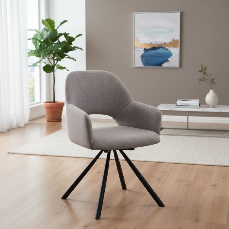 Πολυθρόνα τραπεζαρίας Gabriel Megapap μπεζ ύφασμα – μεταλλικό μαύρο πόδι 58x60x85εκ.
