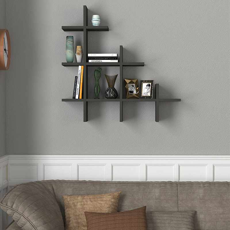 Ραφιέρα τοίχου Juke Megapap από μελαμίνη χρώμα ανθρακί 81,8x18x80εκ.