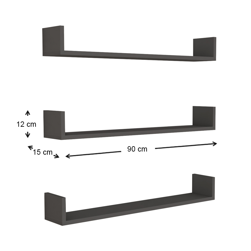 Ραφιέρα τοίχου Tyrion Megapap 3 τεμαχίων χρώμα ανθρακί 90x15x12εκ.
