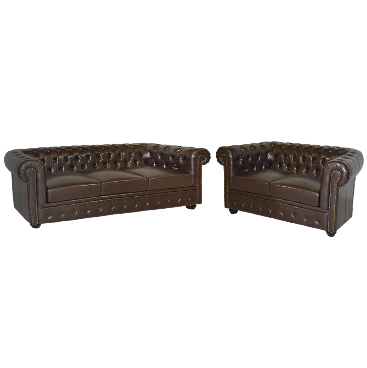 ΣΕΤ ΣΑΛΟΝΙ 2/ΘΕΣΙΟ & 3/ΘΕΣΙΟ CHESTERFIELD ΣΚΟΥΡΟ ΚΑΦΕ