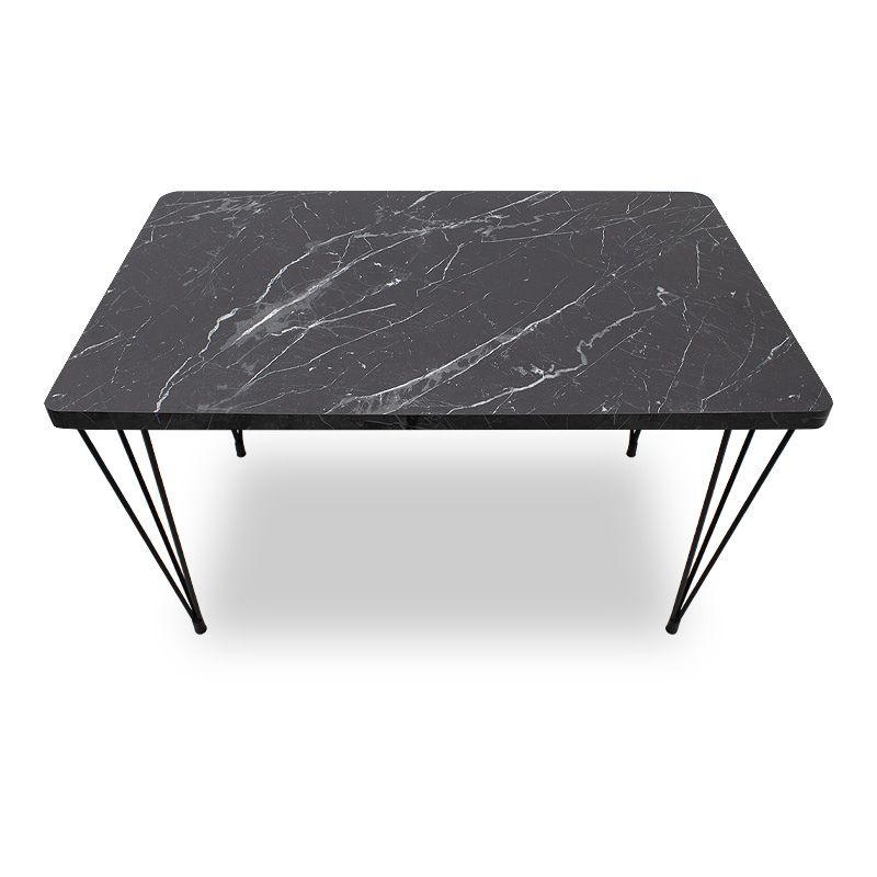 Σετ τραπεζαρία 5τμχ Roger – Chiara Megapap Mdf – ύφασμα χρώμα μαύρο εφέ μαρμάρου – γκρι 120x70x75εκ.