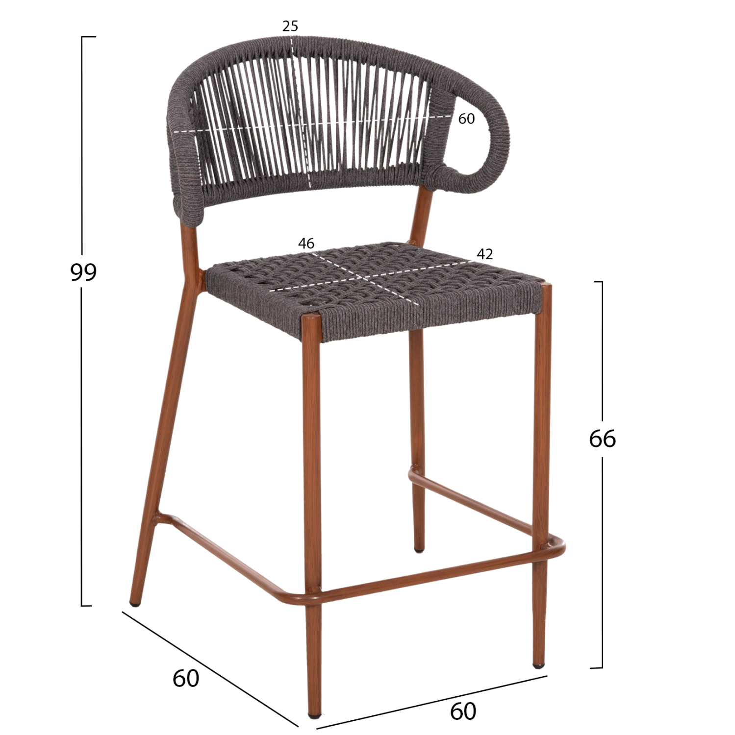 Το σκαμπό μπαρ μεσαίου ύψους αλουμινίου EULO είναι καινούργια προσθήκη στην γκάμα μας. Ο σκελετός είναι σε ΚΑΡΥΔΙ (ξύλου) χρώμα, ενώ διαθέτει μεσαίου ύψους και φαρδιά κυρτή πλάτη και φαρδύ κάθισμα, από ΓΚΡΙ συνθετικό Rattan («τυλιχτό» που μοιάζει με σχοινί). Αυτό το σκαμπό είναι ιδανικό για πληθώρα χρήσεων εξωτερικού χώρου.