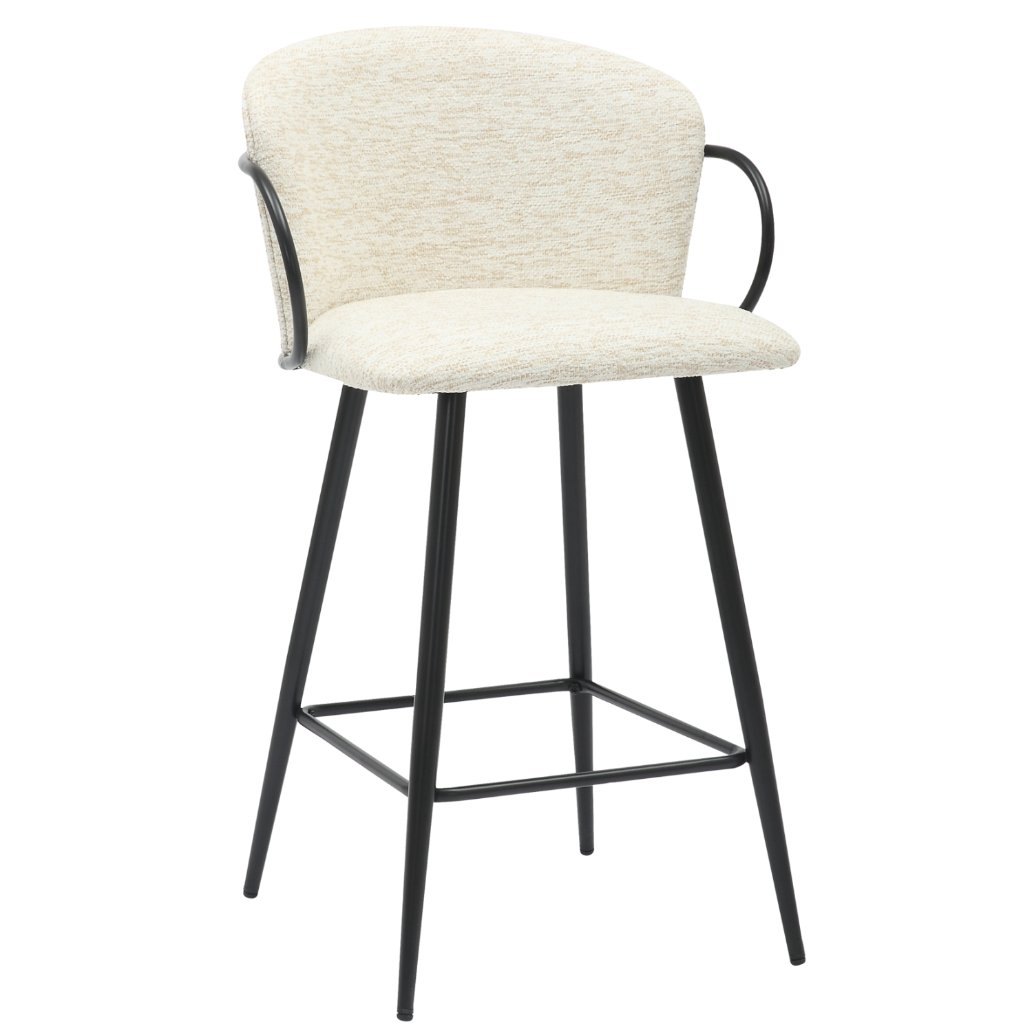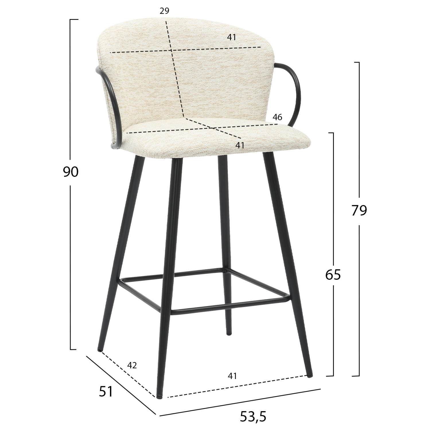 Το NEBOR είναι ένα σκαμπό μεσαίου ύψους με πλάτη και μπράτσα για μπαρ. Τα πόδια, το υποπόδιο, αλλά και τα μπράτσα με το ιδιαίτερο σχήμα είναι μεταλλικά σε ΜΑΥΡΟ χρώμα. Το κάθισμα και η πλάτη είναι επενδυμένα με ΕΚΡΟΥ ύφασμα δημιουργώντας μια έντονη και ελκυστική διχρωμία.