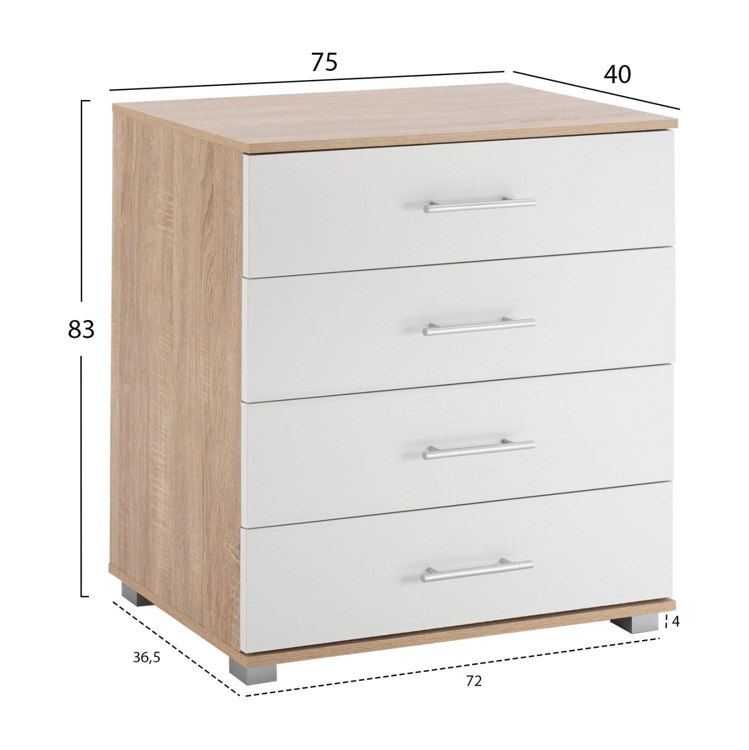 Μοντέρνα συρταριέρα κατασκευασμένη από μελαμίνη, σε sonama απόχρωση με λευκά συρτάρια.
