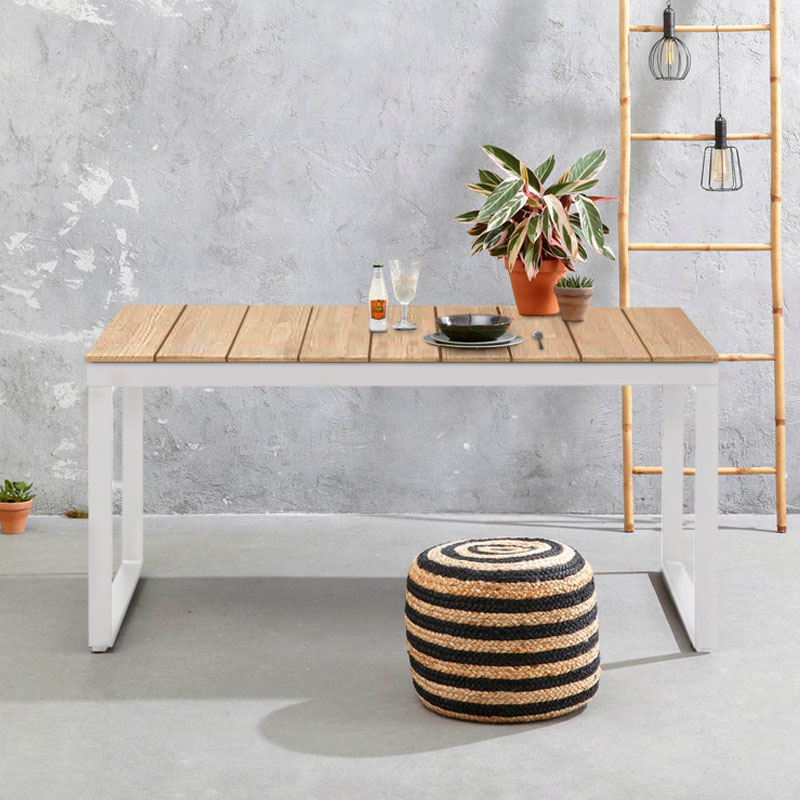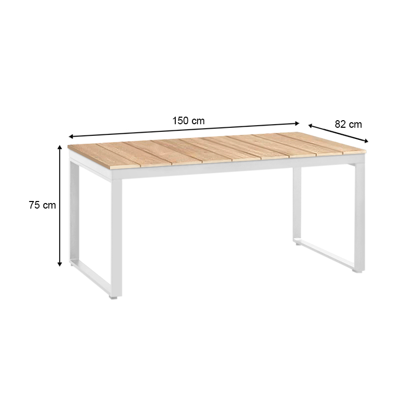 Τραπέζι κήπου Poseidon Megapap μεταλλικό – μασίφ ξύλο χρώμα λευκό – φυσικό 150x82x75εκ.