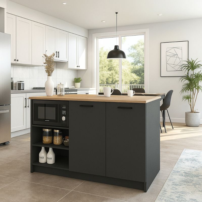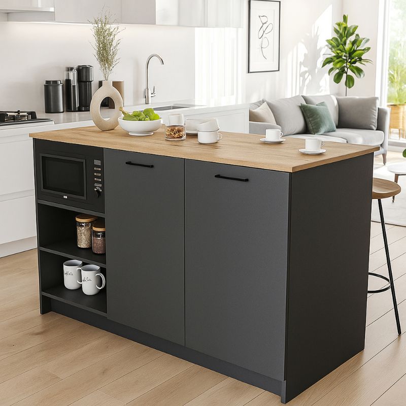 Τραπέζι – Πάγκος κουζίνας Peres Megapap χρώμα ανθρακί – sepet oak 150x70x91,8εκ.