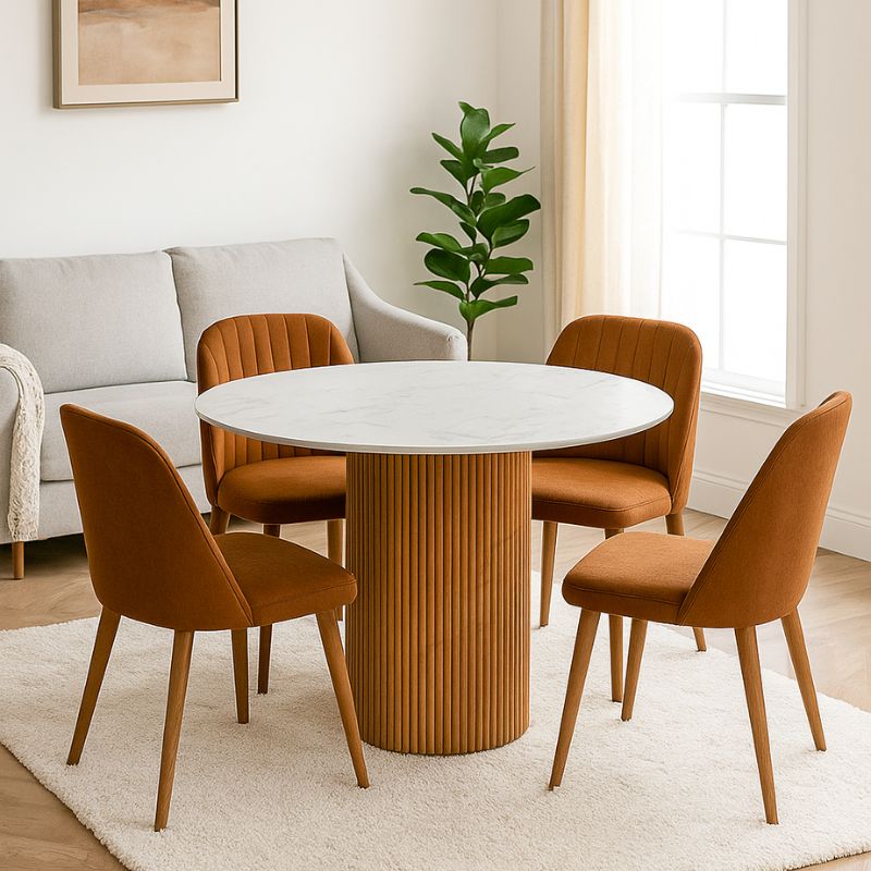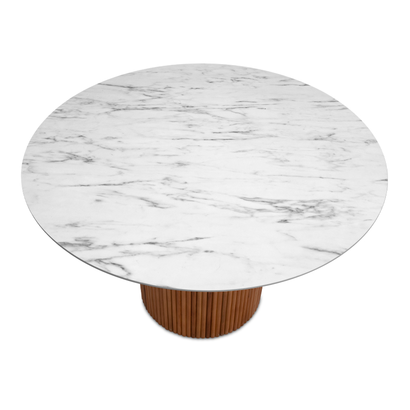 Τραπέζι Borno Megapap χρώμα φυσικό – λευκό εφέ μαρμάρου Ø120×78 εκ.