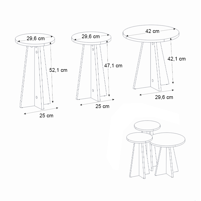 Τραπεζάκι βοηθητικό σετ 3 τμχ Podel Megapap χρώμα travertine Ø29,6×52,1εκ.