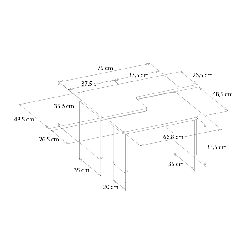 - Διαστάσεις: Μήκος 75 x Βάθος 48,5 x Ύψος 35,6 εκ.