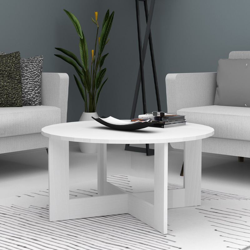 Τραπεζάκι σαλονιού Kati Megapap χρώμα λευκό Ø80×42εκ.