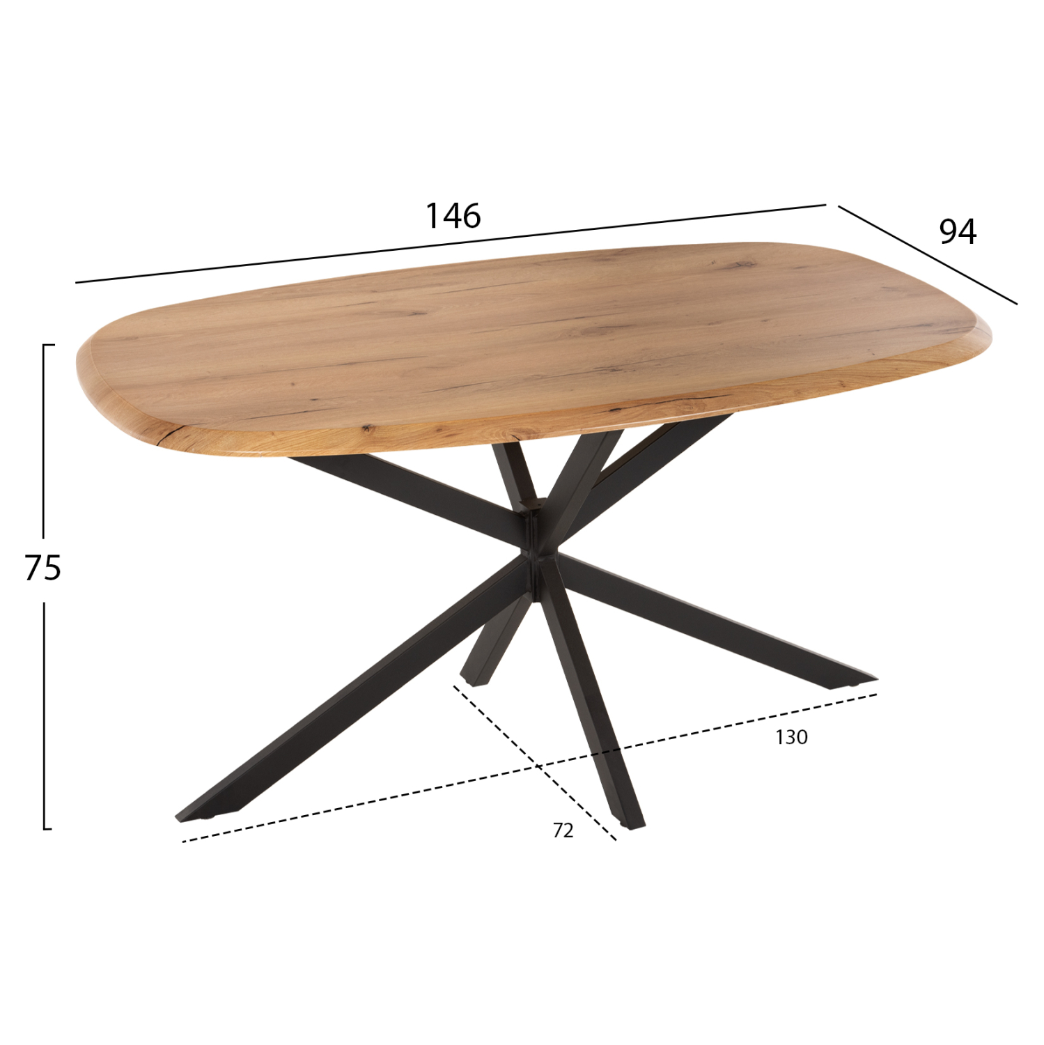 ΤΡΑΠΕΖΙ ΟΒΑΛ RODDEN HM11903.01 ΜΕ WERZALIT ΦΥΣΙΚΟ-ΜΑΥΡΗ ΧΙΑΣΤΙ ΒΑΣΗ 146x94x75Υεκ