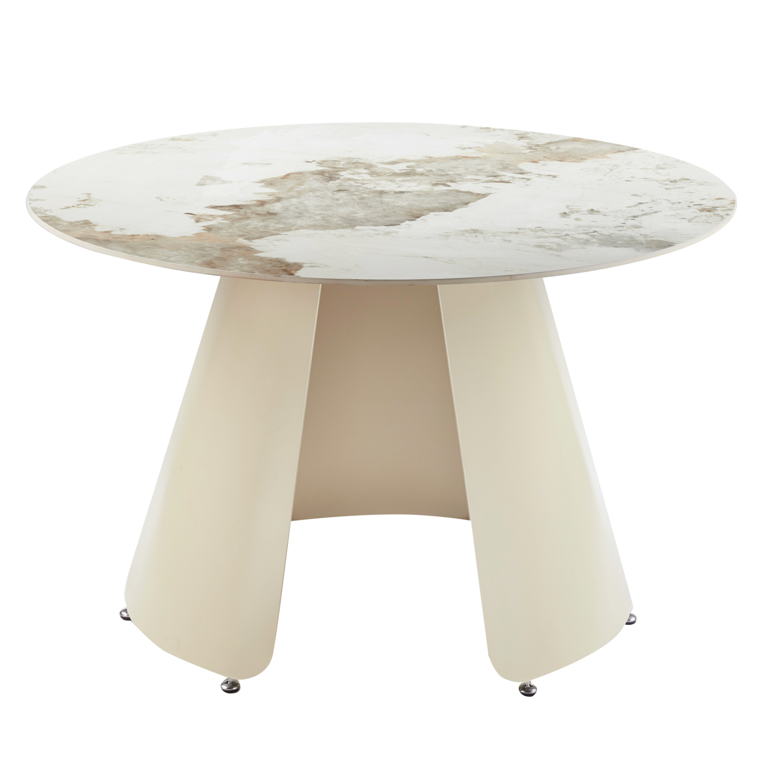 ΤΡΑΠΕΖΙ ΤΡΑΠΕΖΑΡΙΑΣ ΣΤΡΟΓΓΥΛΟ SEDAR HM18326 ΚΕΡΑΜΙΚΟ TOP–ΚΡΕΜ ΜΕΤΑΛ.ΠΟΔΙΑ Φ120×78Υ