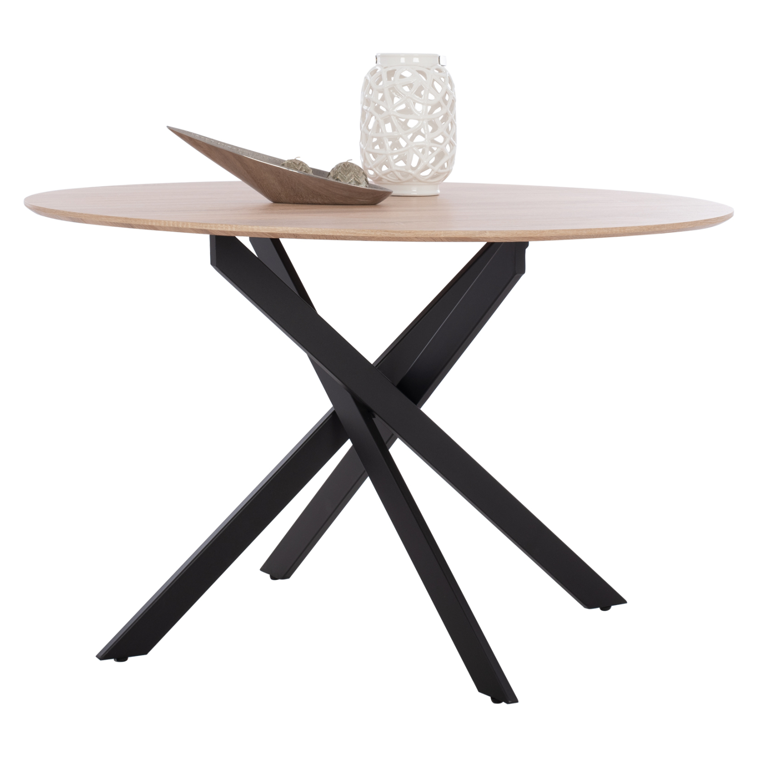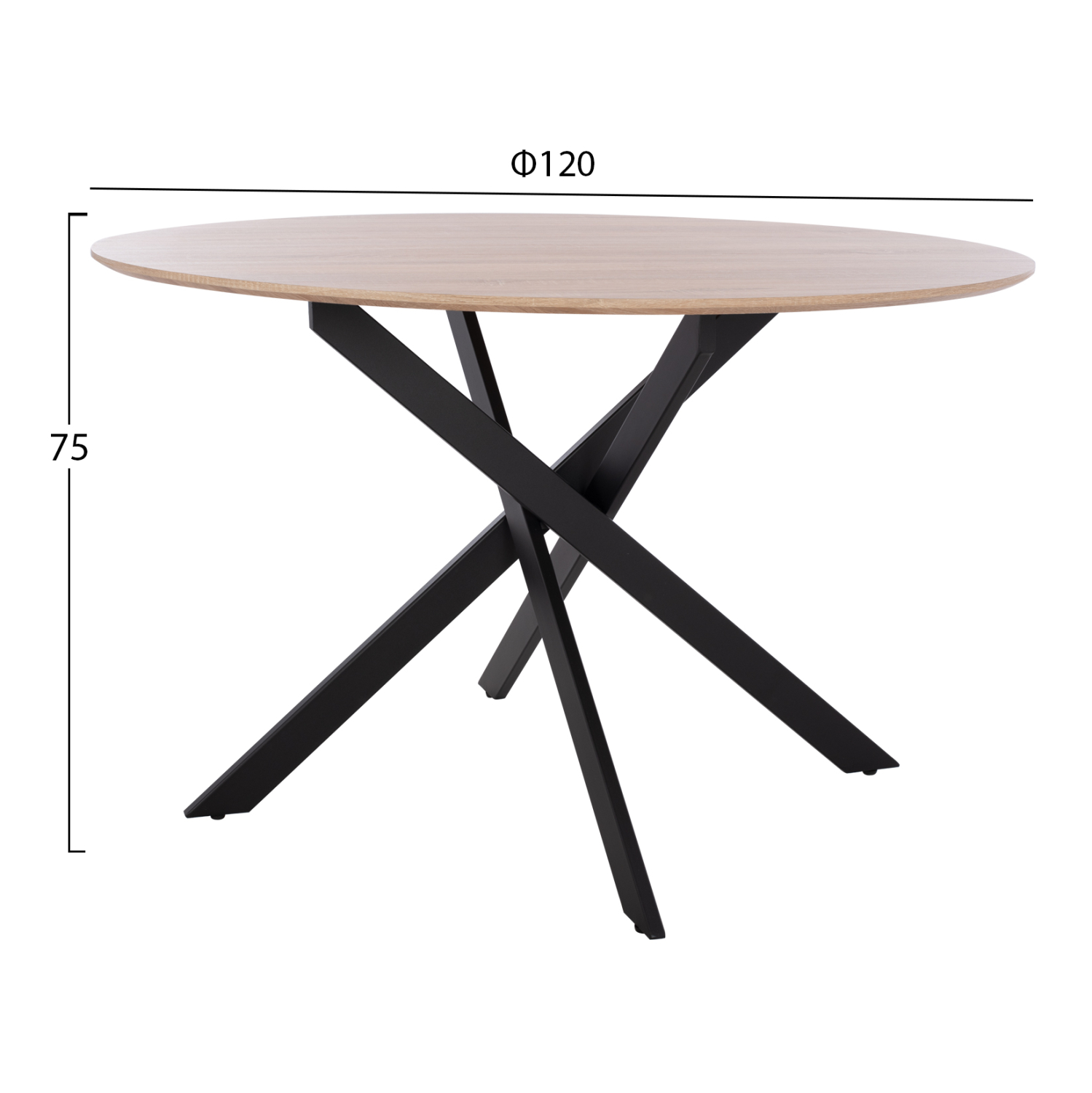 Τραπέζι τραπεζαρίας Rosario, σε sonama απόχρωση και μαύρα πόδια Φ120Χ75 εκ.