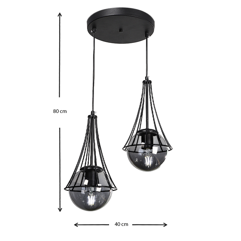 Φωτιστικό οροφής Chavi Megapap E27 μεταλλικό δίφωτο χρώμα μαύρο 40x40x80εκ.