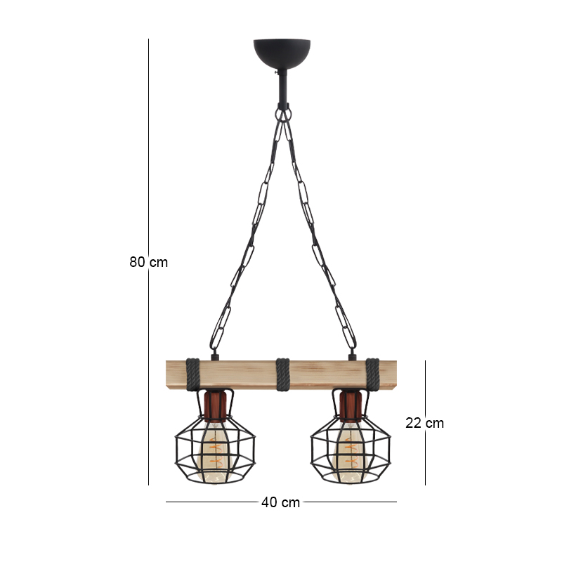 Φωτιστικό οροφής Lumenia Megapap E27 ξύλινο – μεταλλικό δίφωτο χρώμα φυσικό – μαύρο 40x14x80εκ.