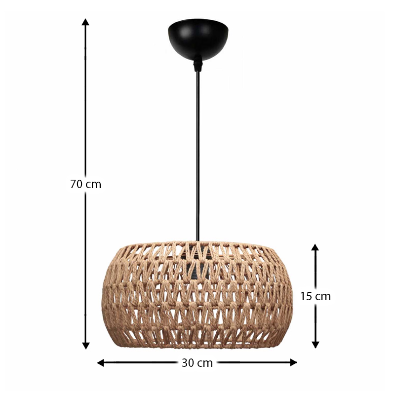 Φωτιστικό οροφής Miranda Megapap E27 από σχοινί μονόφωτο χρώμα φυσικό Ø30×70εκ.
