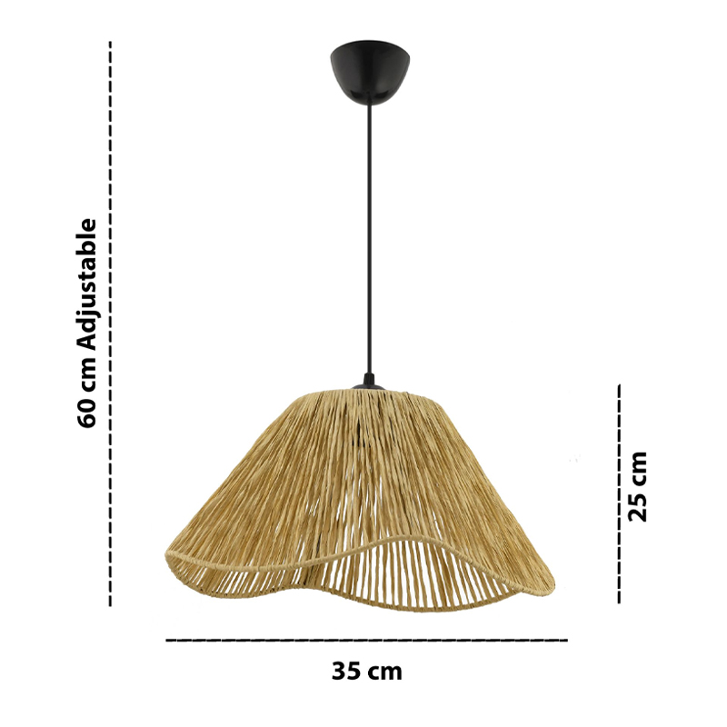 Φωτιστικό οροφής Sukne Megapap E27 γιούτα μονόφωτο χρώμα camel Ø35×60εκ.