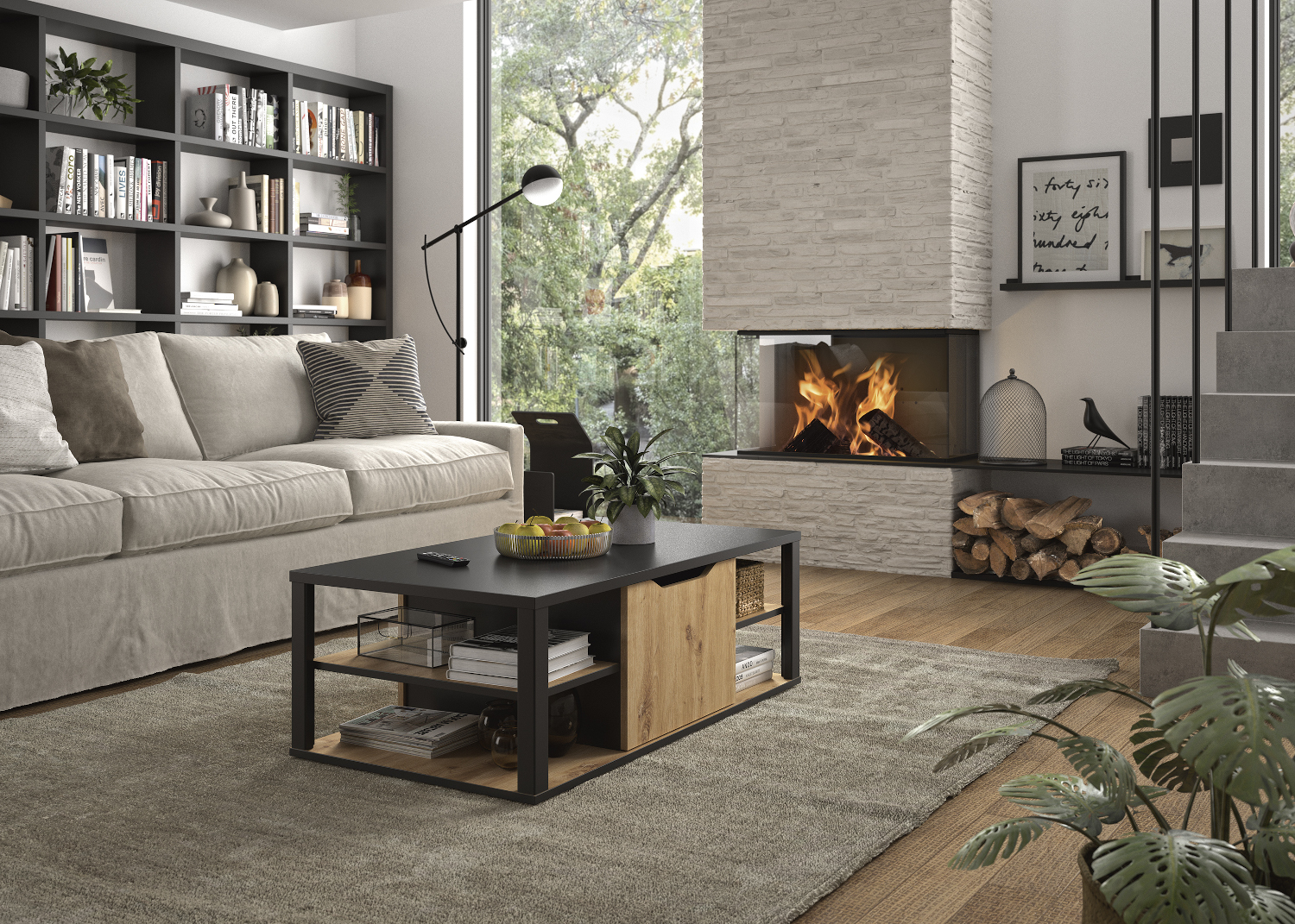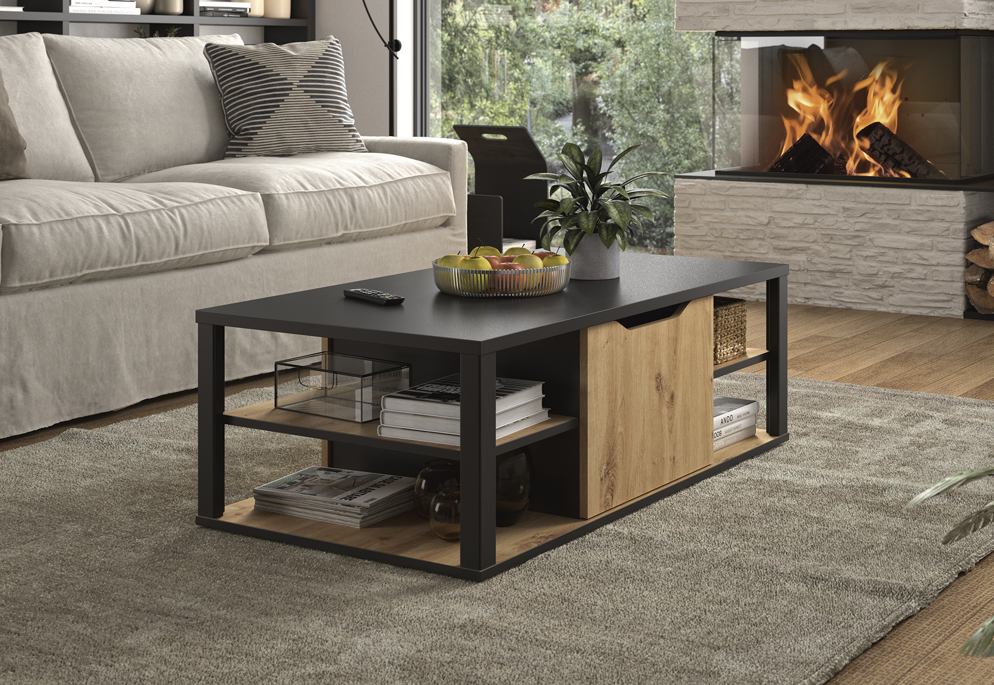 Buxton τραπεζάκι σαλονιού με χώρο αποθήκευσης 110x60x38εκ. Artisan Oak / Black