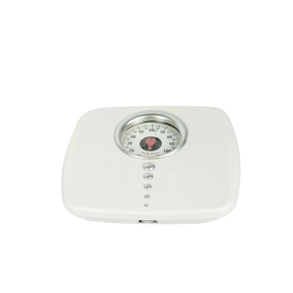 Αναλογική ζυγαριά μπάνιου σε λευκό χρώμα, για μέτρηση του σωματικού βάρους έως και 120 κιλά.