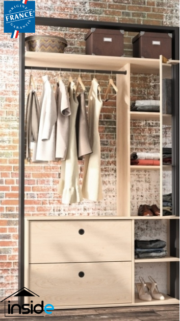 Αυτή η εξελιγμένη μονάδα "all-in-one" προσφέρει μια σύγχρονη εναλλακτική λύση σε μια παραδοσιακή ντουλάπα, δημιουργώντας μια μινιμαλιστική αίσθηση σε κάθε υπνοδωμάτιο. Περιλαμβάνει μία κρεμαστή ράγα, μία πόρτα με καθρέφτη, δύο συρτάρια και τέσσερα ράφια. Η ανοιχτή ντουλάπα Duplex χαρακτηρίζεται από έναν κομψό συνδυασμό μαύρου και φυσικού φινιρίσματος. Συνδυάστε το με το κρεβάτι Duplex και δώστε στυλ στο υπνοδωμάτιό σας!