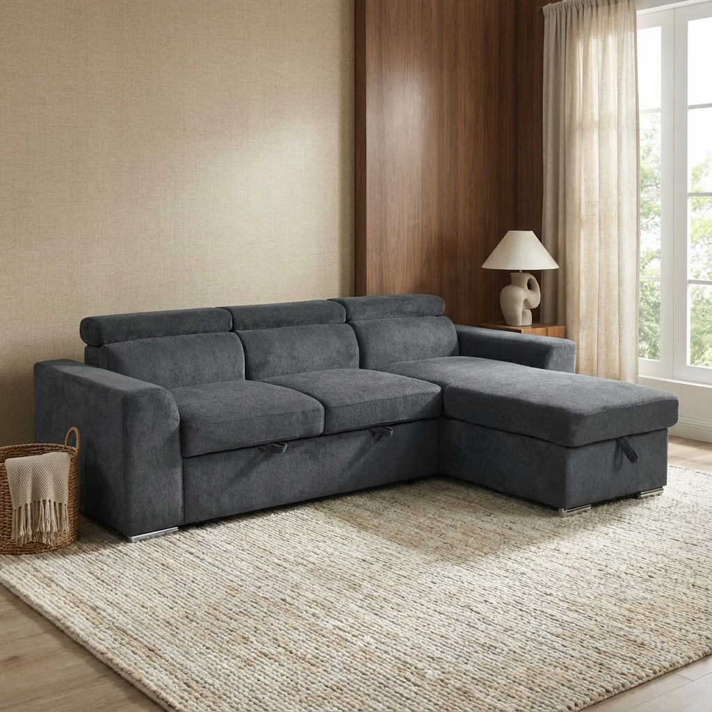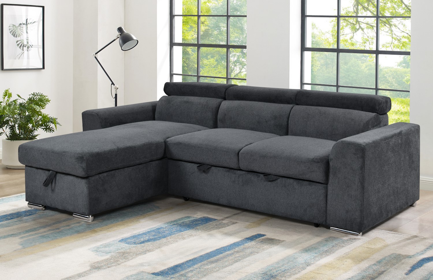 Ο γωνιακός καναπές Elmira είναι μοντέρνος και αναπαυτικός. Διαθέτει ανάκλιση στο πάνω μέρος της πλάτης για μεγαλύτερη άνεση. O καναπές είναι επενδυμένος με ύφασμα σε χρώμα γκρι σκούρο. Οι διαστάσεις του είναι 247×174εκ. Ο καναπές γωνία Elmira διαθέτει αποθηκευτικό χώρο στο ανάκλινδρο και μετατρέπεται εύκολα σε διπλό κρεβάτι διαστάσεων 136×196εκ. H γωνία του καναπέ είναι αναστρέψιμη .