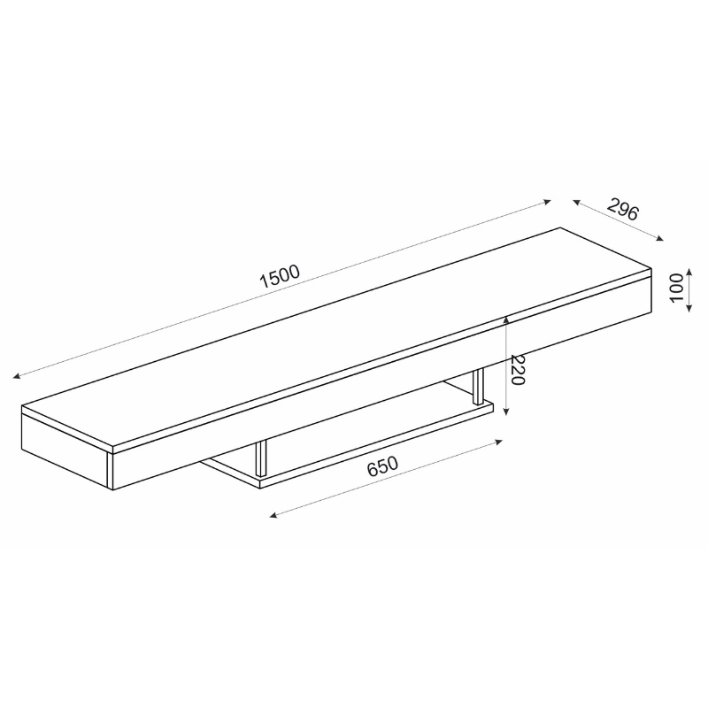 - Διαστάσεις: Μήκος 150 x Βάθος 29,6 x Ύψος 22 εκ.