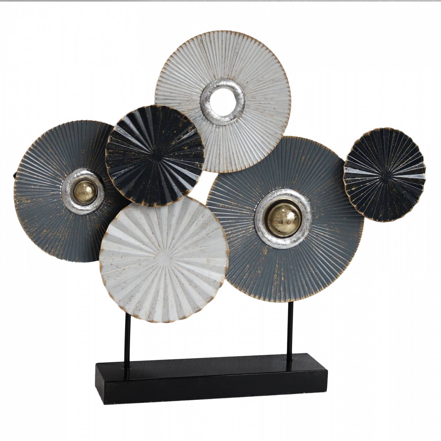 Μεταλλικό επιτραπέζιο διακοσμητικό σε λευκή και γκρι απόχρωση με λεπτομέρειες από ασημί και χρυσές πινελιές και βάση σε μαύρο χρώμα.