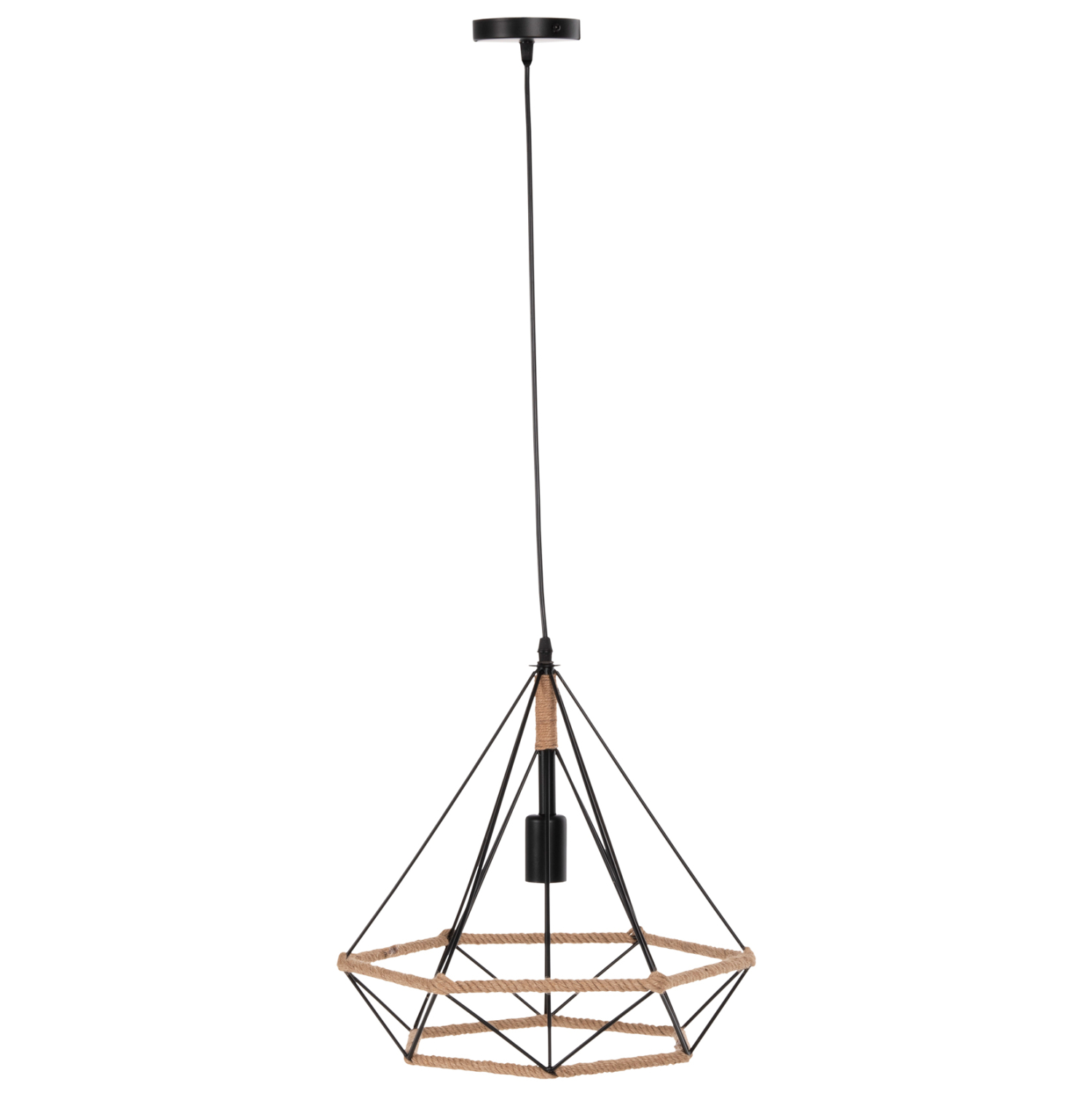 Αφήστε το φως να απλωθεί στον χώρο με ένα πρωτότυπο και φινετσάτο κρεμαστό μονόφωτο οροφής, ολοκληρώνοντας την διακόσμησή σας. Το σχήμα διαμαντιού με ΜΑΥΡΕΣ μεταλλικές ράβδους και σχοινί, είναι η επιτομή του μοντέρνου design.