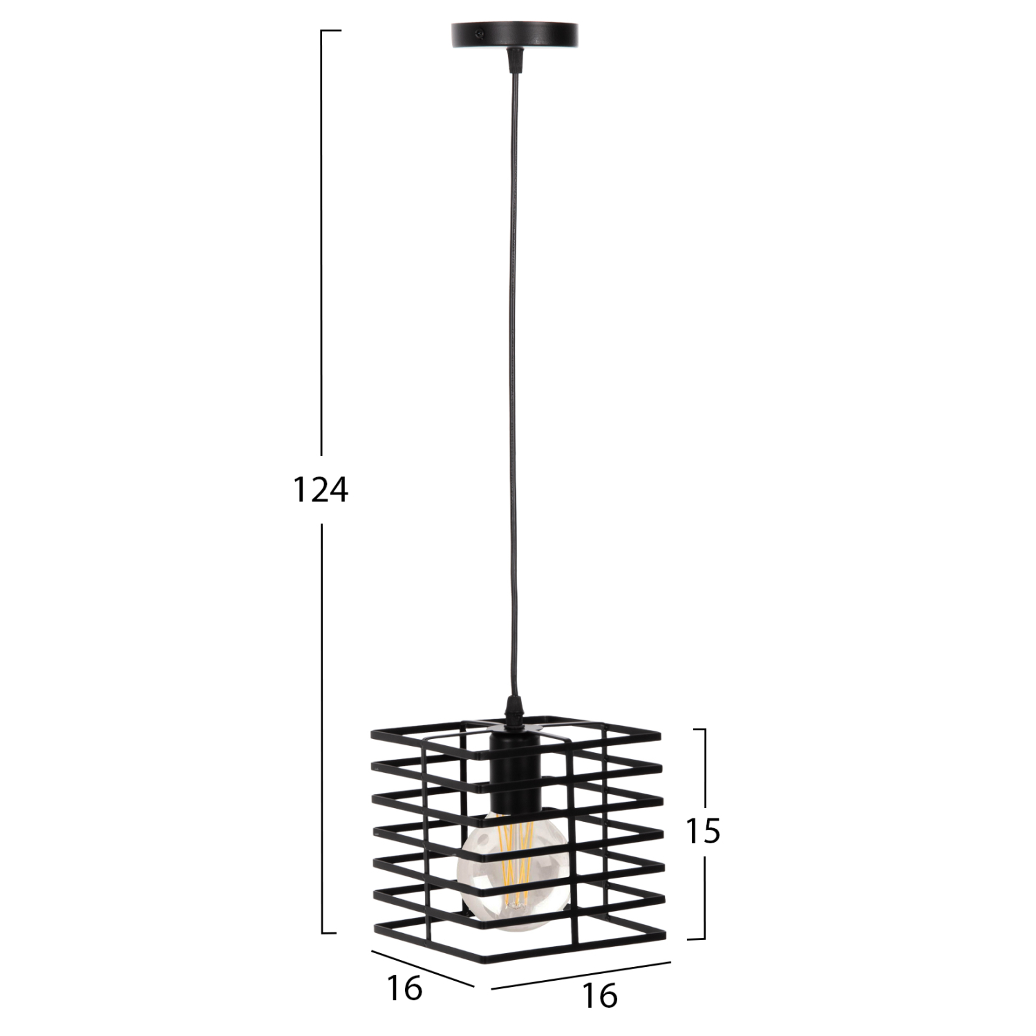 Ανακαλύψτε αυτό το όμορφο κρεμαστό φωτιστικό οροφής από την νέα γκάμα μας, ολοκληρώνοντας την διακόσμησή σας. Το ΜΑΥΡΟ καπέλο σε σχήμα κύβου σε μοντέρνα υλοποίηση, θα δημιουργήσει την όμορφη ατμόσφαιρα που πάντα θέλατε για τον χώρο σας.