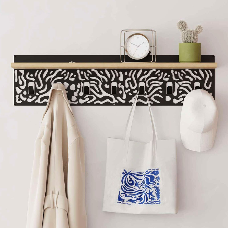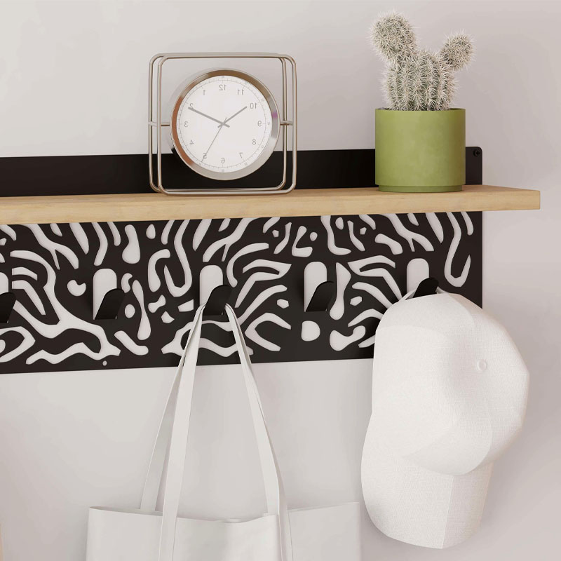 Κρεμάστρα τοίχου Novo Megapap από μέταλλο – μελαμίνη χρώμα sapphire oak – μαύρο 80×12,2×20εκ.