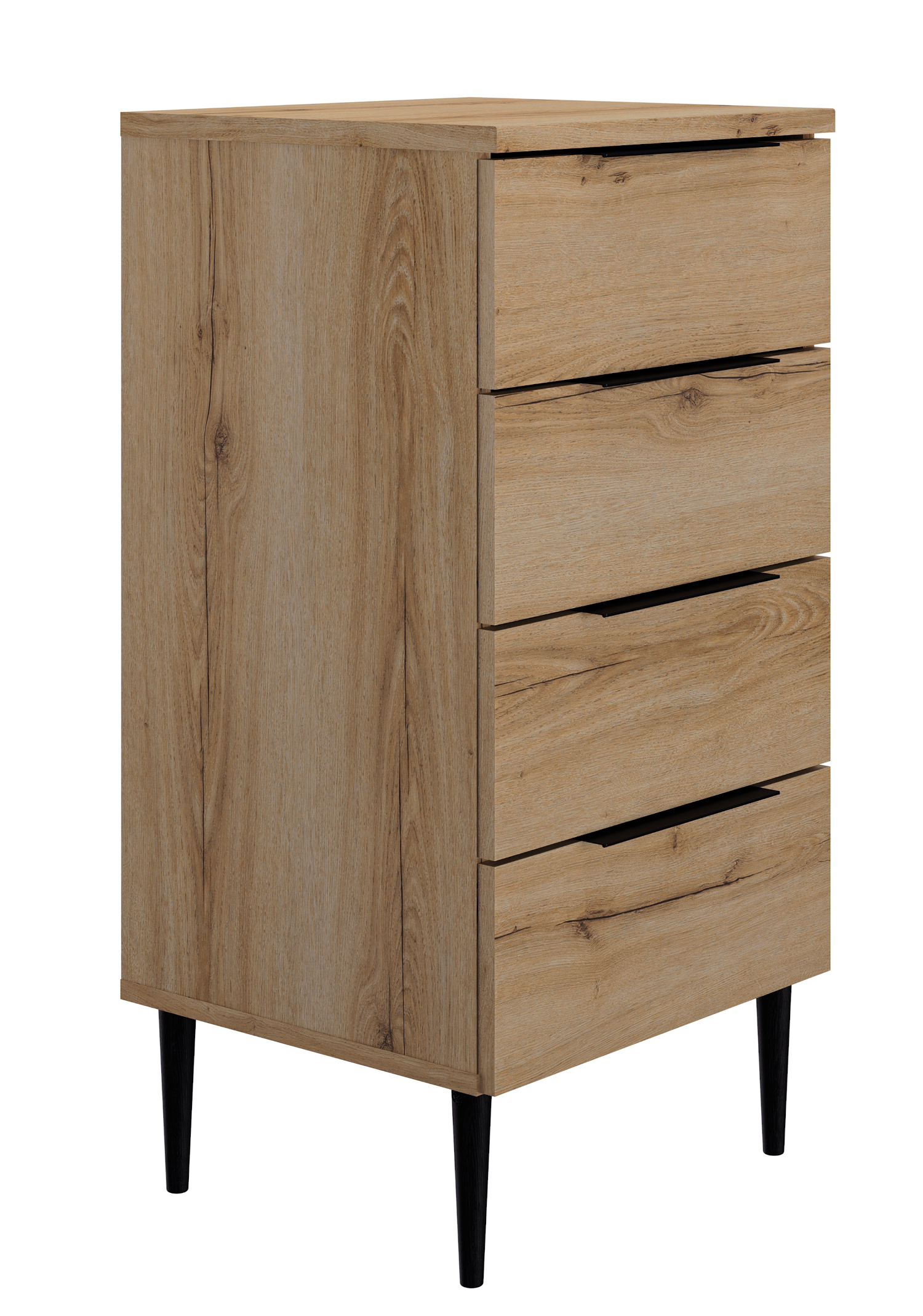 Η ψηλή συρταριέρα Lucian είναι ένα κομψό έπιπλο που θα φέρει λειτουργικότητα και στυλ στον χώρο σας. Με τέσσερα ευρύχωρα συρτάρια, αυτή η ψηλή συρταριέρα προσφέρει αρκετό αποθηκευτικό χώρο για τα προσωπικά σας αντικείμενα, ενώ παράλληλα διατηρεί μια κομψή και συμπαγή εμφάνιση.