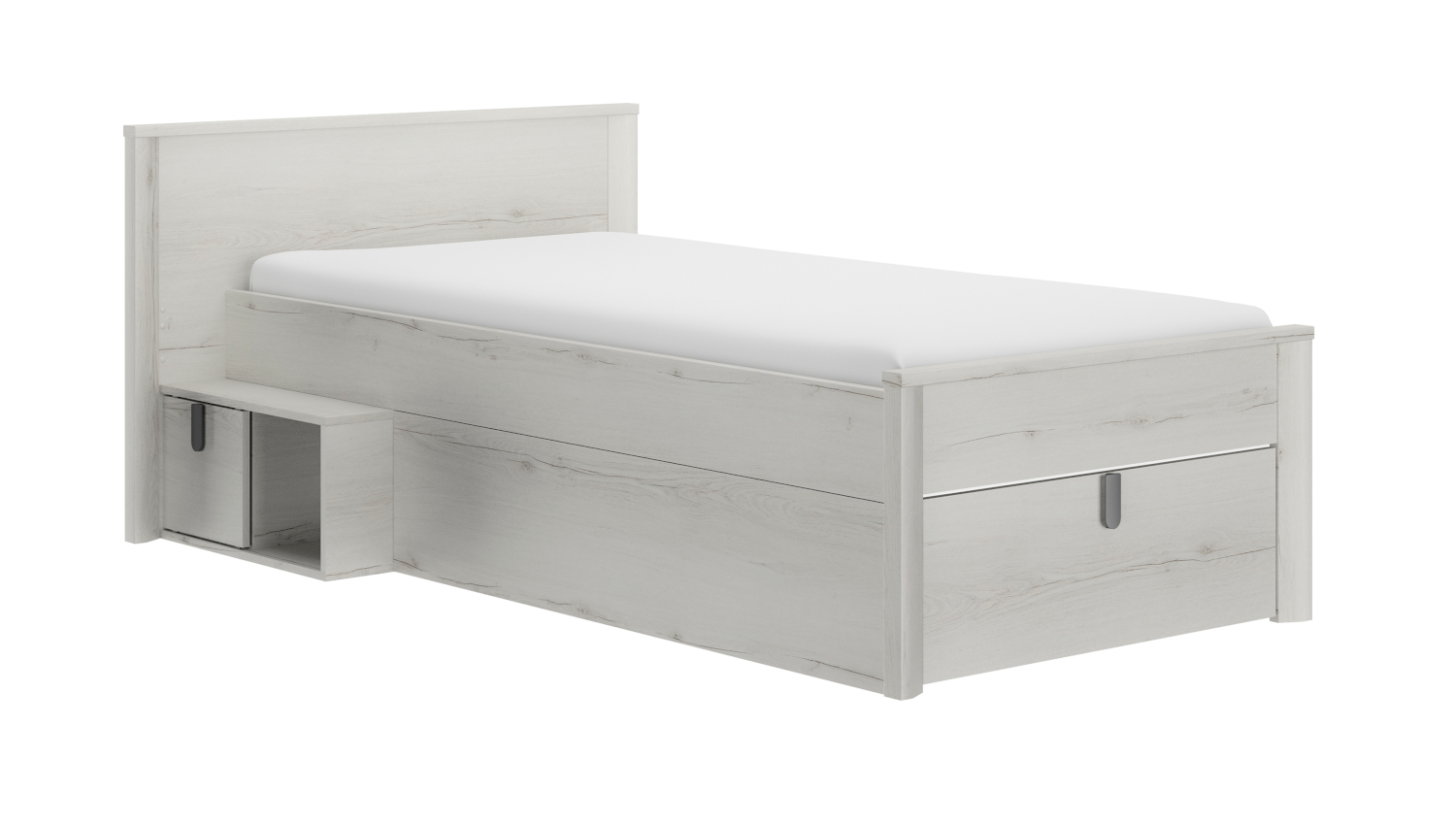 Lugano κρεβάτι με αποθηκευτικό χώρο 207x123x80εκ. ( για στρώμα 90×190εκ. ή 90×200εκ. ) Whitewashed Oak