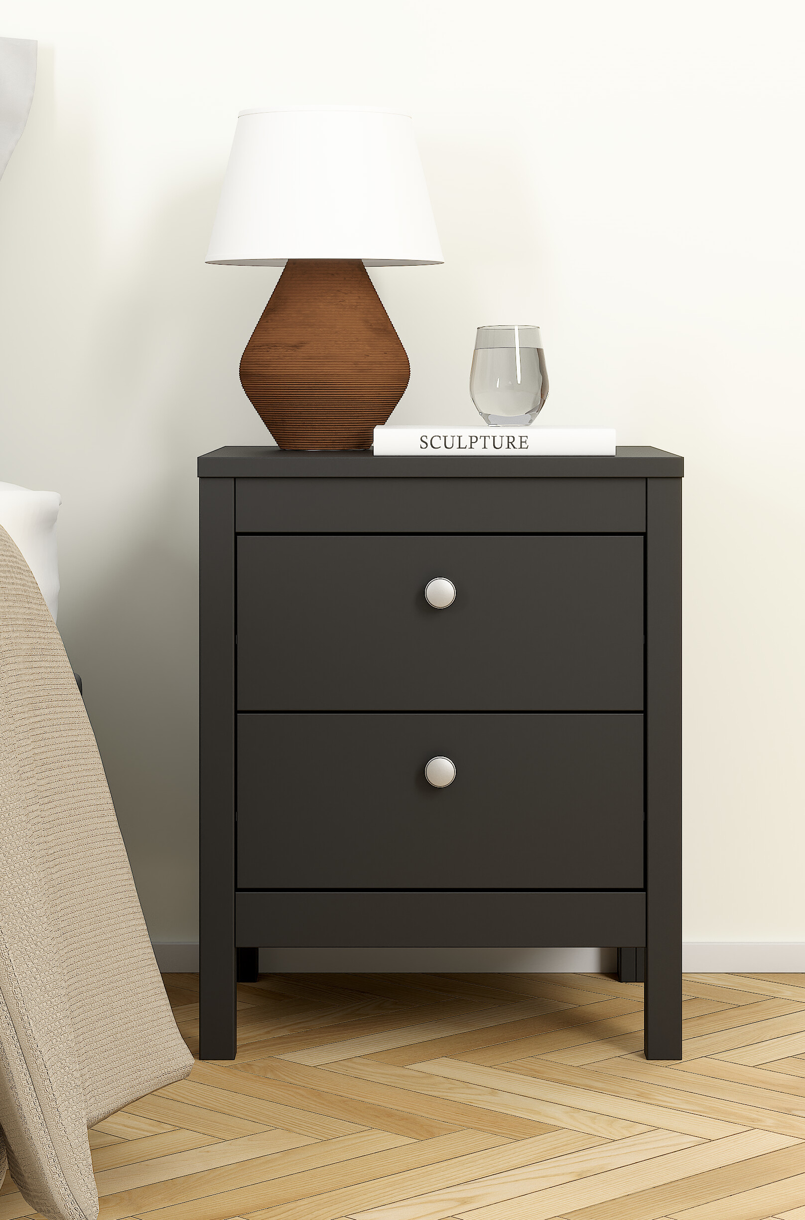 Madrid κομοδίνο με 2 συρτάρια 43,8×38,4×54,1εκ. Μαύρο