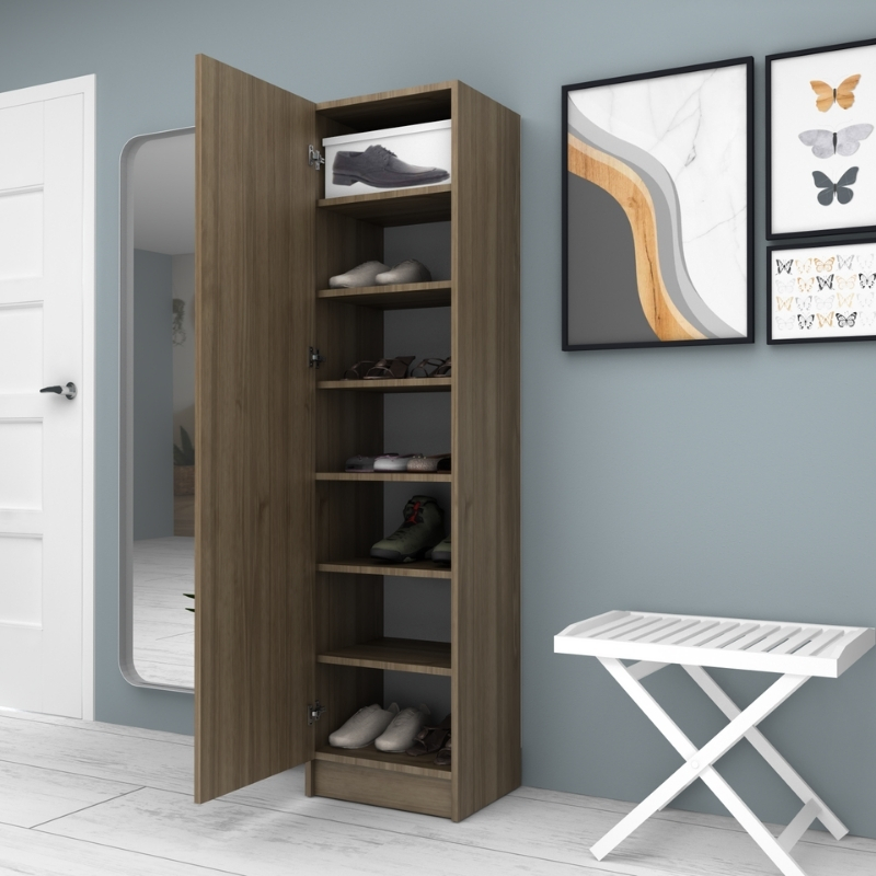 Ντουλάπα ρούχων – παπουτσοθήκη Petro Megapap μονόφυλλη χρώμα καρυδί 45x38x180εκ.