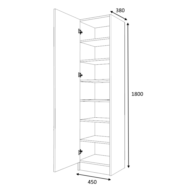 - Διαστάσεις: Μήκος 45 x Βάθος 38 x Ύψος 180 εκ.