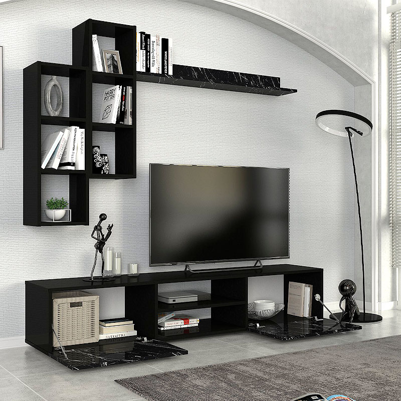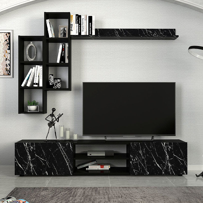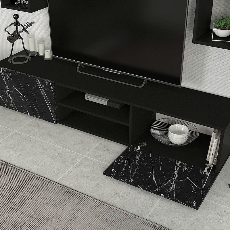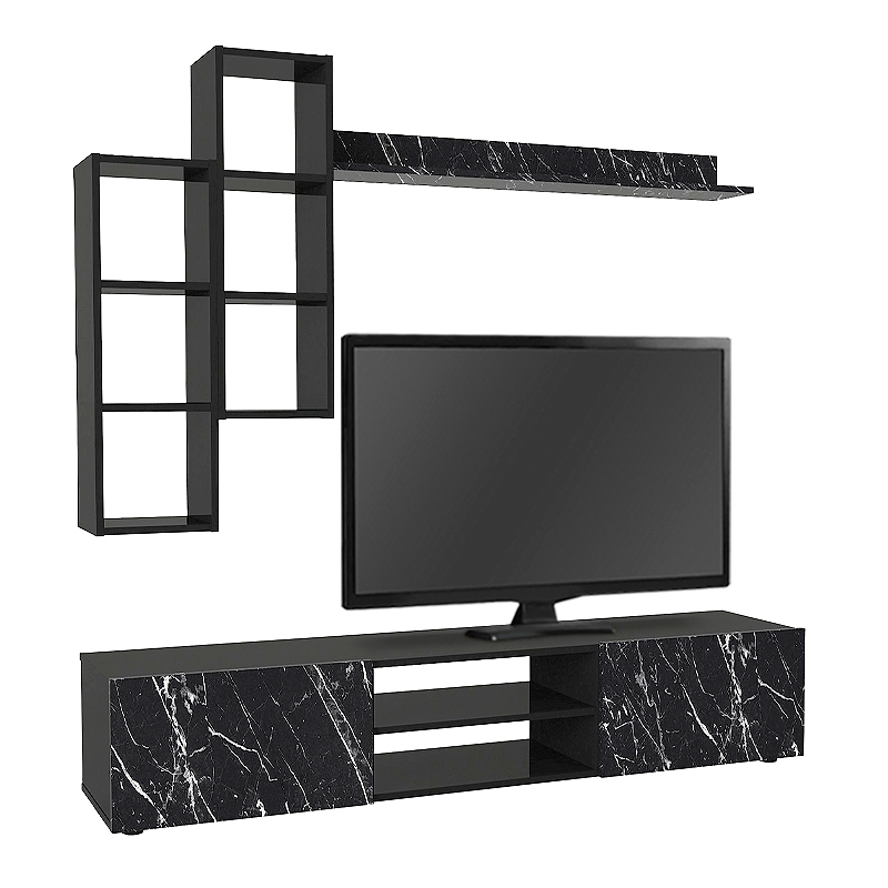 Σύνθεση τηλεόρασης Duana Megapap χρώμα μαύρο εφέ μαρμάρου – μαύρο 180x38x35,7εκ.