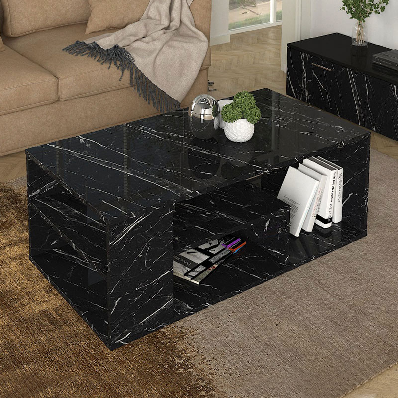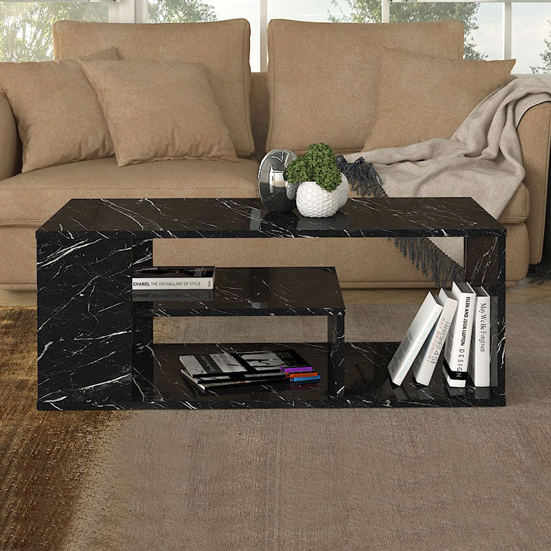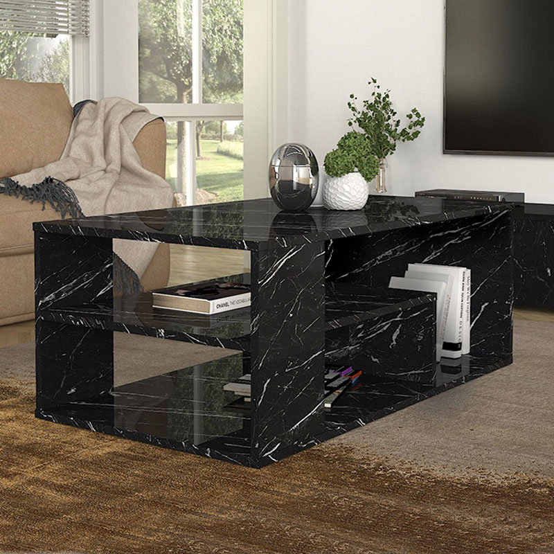 Τραπεζάκι σαλονιού Abdera Megapap χρώμα μαύρο εφέ μαρμάρου 110x60x42εκ.
