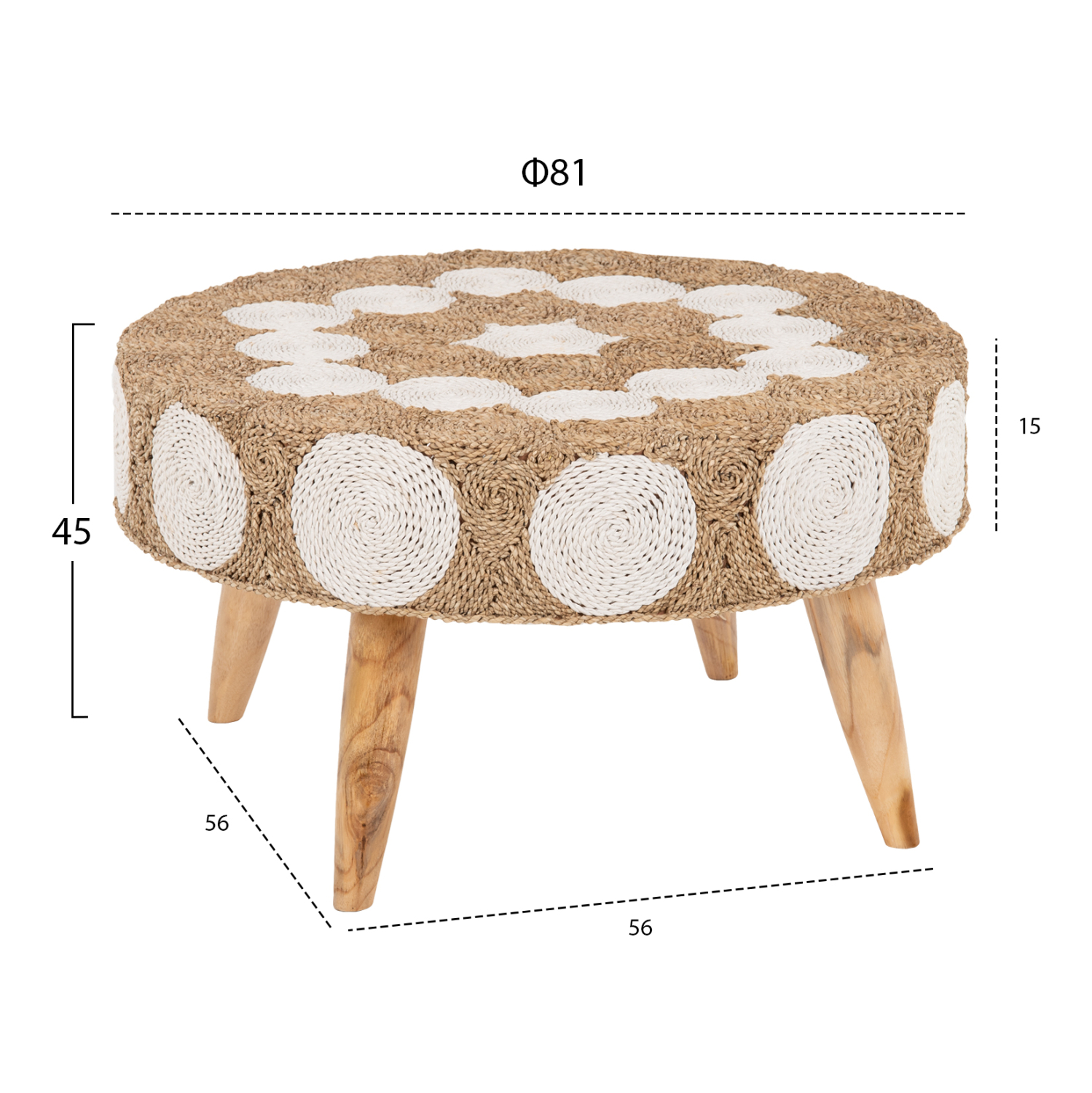 Το ΗΜ7825 είναι ένα στρογγυλό τραπέζι για το σαλόνι, με ικανοποιητικές διαστάσεις σε φυσικό και λευκό χρώμα ξύλου και επένδυσης. Ο σκελετός του τραπεζιού και τα πόδια είναι κατασκευασμένα από ξύλο ΤΕΑΚ ενώ η επένδυση του τραπεζιού έχει γίνει με μια πολύ ιδιαίτερη ψάθα, με κυκλικά σχέδια. Πρόκειται για ένα τραπέζι που θα δώσει μια άλλη αίσθηση στο σαλόνι σας, πολύ ξεχωριστή.