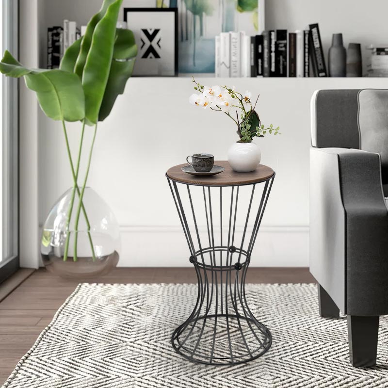 Βοηθητικό τραπεζάκι Girene Megapap μεταλλικό – Mdf χρώμα μαύρο – καρυδί 32x32x58εκ.